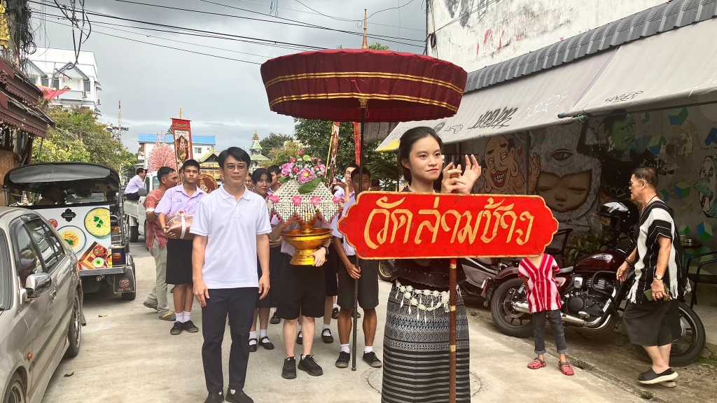 งานนักศึกษาวิชาทหาร นำผู้กำกับและนักศึกษาวิชาทหาร ช่วยงานกฐิน ประจำปี 2568 วัดล่ามช้าง เพื่อส่งเสริมนักเรียน