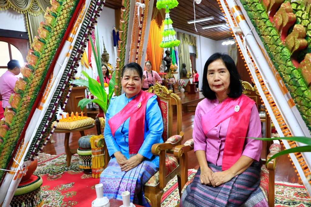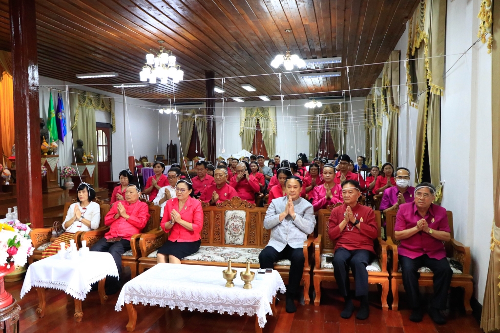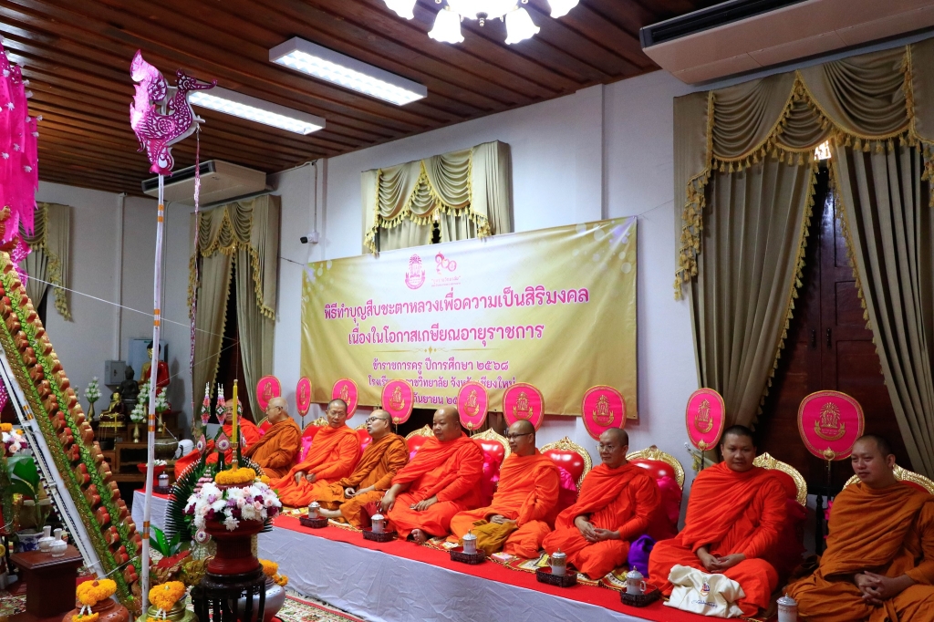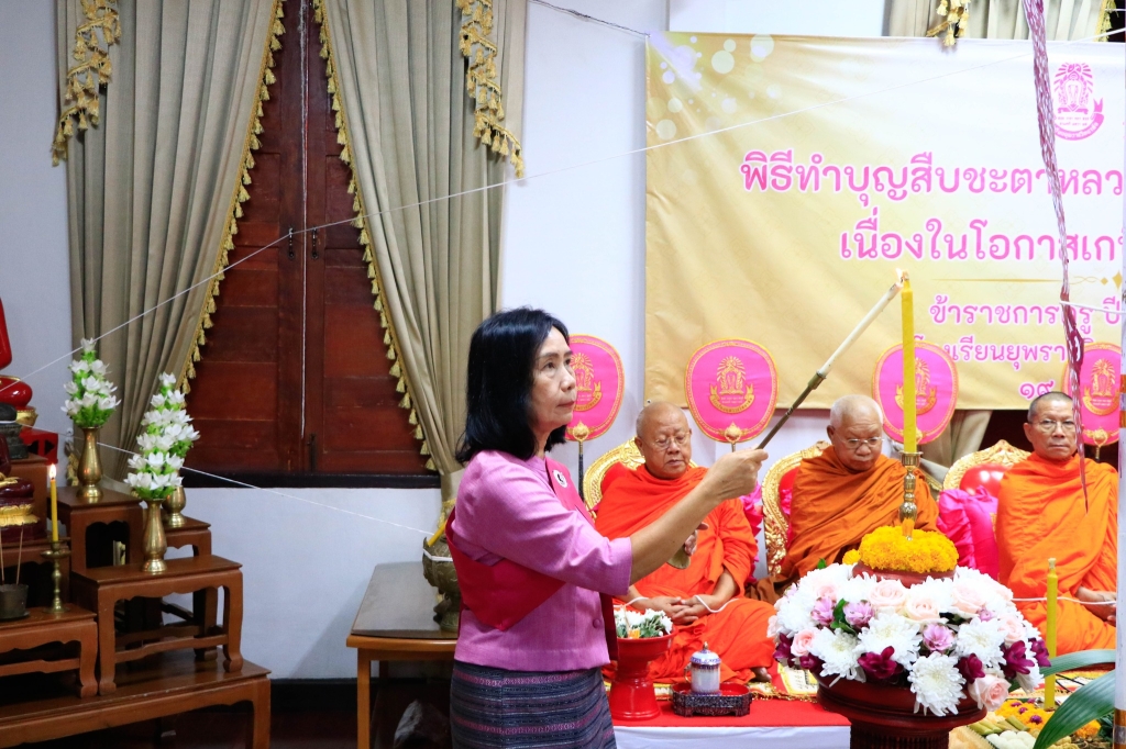 Nine Buddhist monks performed the religious rites, offering blessings for prosperity and good fortune to the retiring teachers. The event was held at the Yupparaj Building.