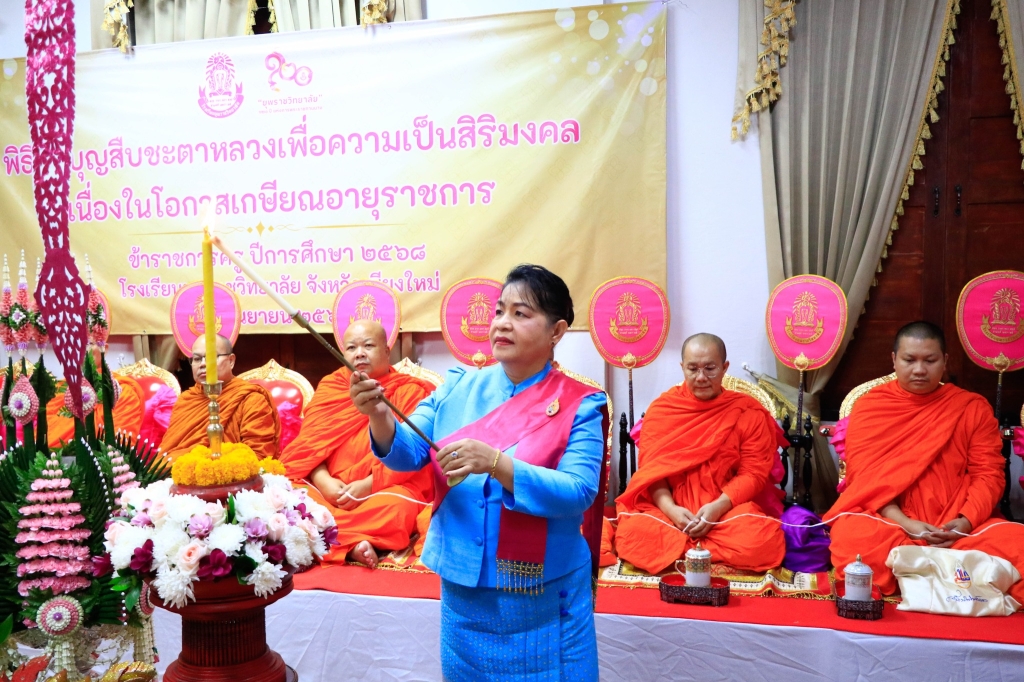 On Friday, September 19, 2025, Yupparaj Wittayalai School held a Lanna Buddhist Blessing Ceremony (Suep Chata Luang) to honor two retiring teachers of the academic year 2025: