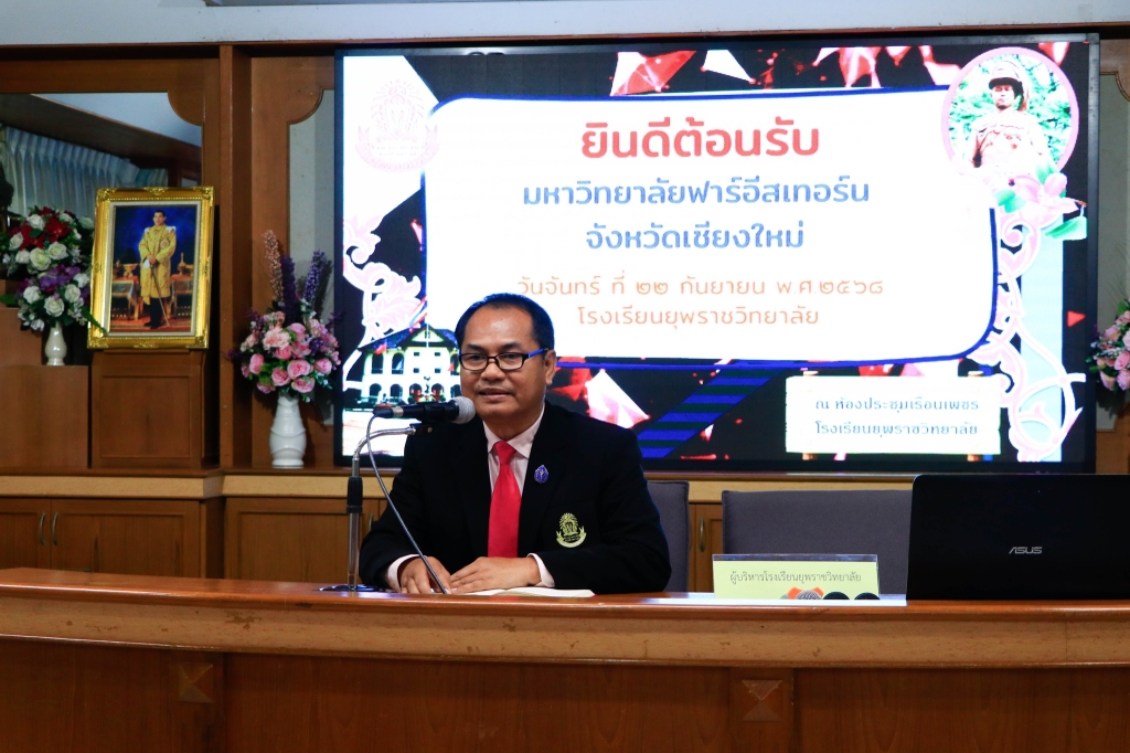 วันจันทร์ที่ 22 กันยายน 2568 นางสาวสุปราณี ปัญญานะ ผู้อำนวยการโรงเรียนยุพราชวิทยาลัย มอบหมายให้นายธนพล กมลหัตถ์ รองผู้อำนวยการฝ่ายอำนวยการ เป็นประธานในพิธีเปิดโครงการพัฒนาศักยภาพภาวะผู้นำสำหรับผู้บริหารยุคใหม่ ภายในกิจกรรมมีการบรรยาย “ภาวะผู้นำของผู้บริหารการศึกษาในศตวรรษที่ 21” และบรรยาย “ด้านวิชาการ การบริหารจัดการ และนวัฒนธรรมการเรียนการสอน” และกิจกรรมแลกเปลี่ยนเรียนรู้ “การสร้างวัฒนธรรมองค์กรและเครือข่ายความร่วมมือ” โดยคณะผู้บริหารและคณะครู ให้แก่นักศึกษาระดับปริญญาโท และคณาจารย์มหาวิทยาลัยฟาร์อิสเทอร์น ณ ห้องประชุมเรือนเพชร