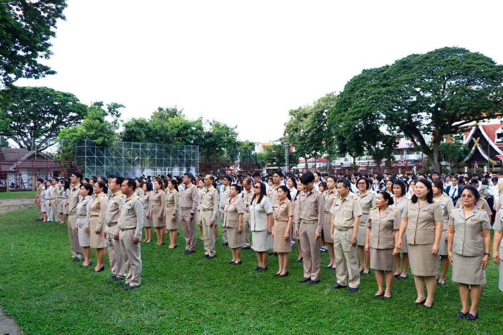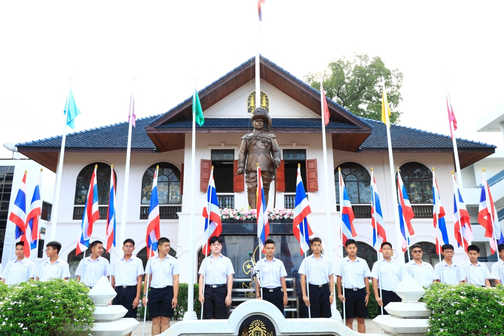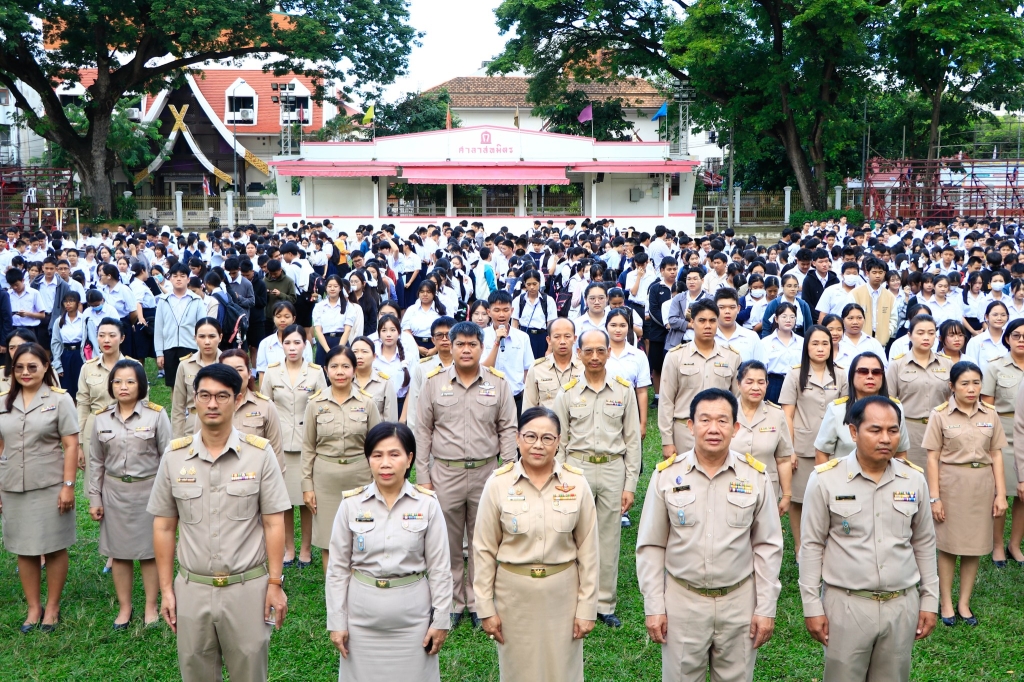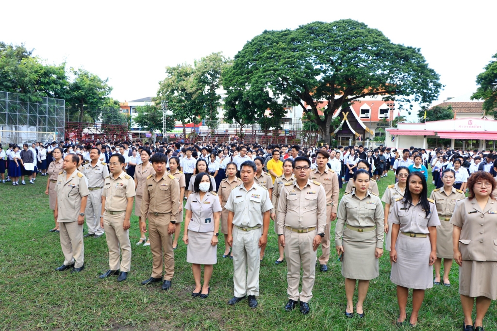 The event began with a flag salute and the singing of the Thai national anthem in unison, followed by a pledge of allegiance to express loyalty to the Nation, Religion, the Monarchy, and the Tricolour flag — a symbol of Thai identity. The ceremony was held in front of the flagpole at Yupparaj Wittayalai School.