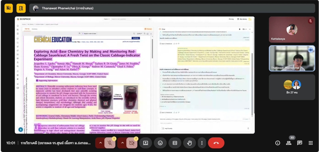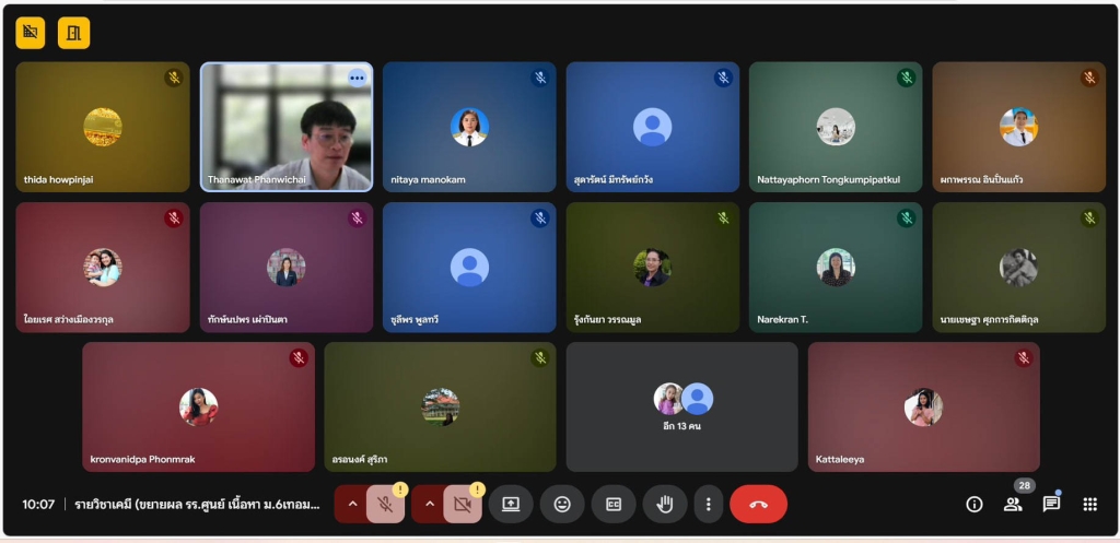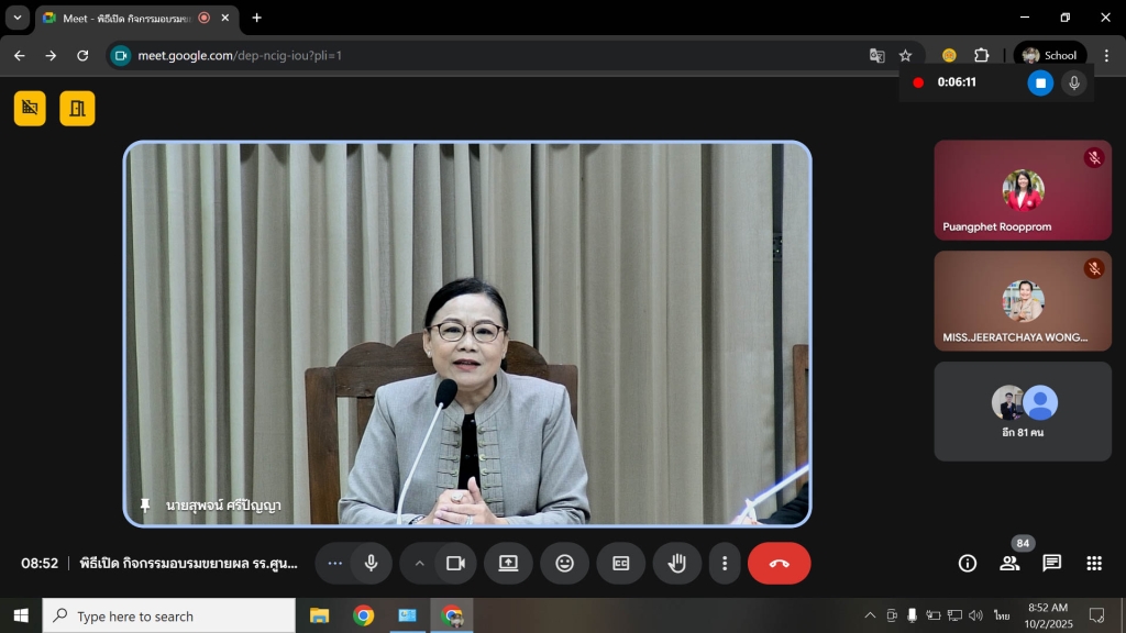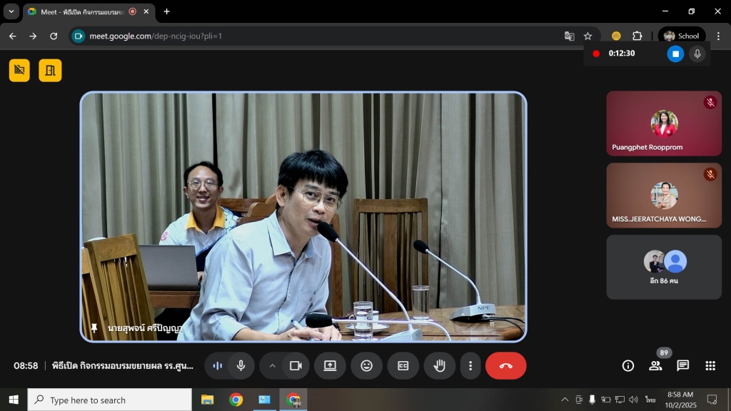 On Thursday, October 2, 2025, Ms. Supranee Panyana, Director of Yupparaj Wittayalai School, presided over the workshop and training program for lead teacher trainers of hub schools, providing training to center schools under the “Power of Ten Science Project” in the subjects of Science, Mathematics, and Technology for Matthayom 6, Semester 2, in the Upper Northern Network. The training was conducted online via Google Meet.