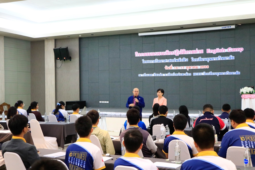 On Thursday, October 16, 2025, Ms. Supranee Panyana, Director of Yupparaj Wittayalai School, assigned Mr. Sombat Khamboonsoong, Deputy Director of Student Affairs, and Ms. Yanisa Kamphira, Deputy Director of General Administration, to extend their encouragement and support to students participating in the English Camp Workshop under the "Ten Power Science Program". The activity was held at Green Lake Resort, Chiang Mai