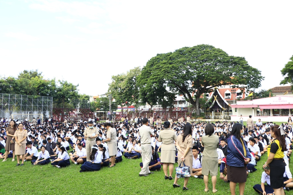 บรรยากาศการเปิดภาคเรียนวันแรกของภาคเรียนที่ 2 ปีการศึกษา 2568 ในวันจันทร์ที่ 20 ตุลาคม 2568 โดยมีนายสมบัติ คำบุญสูง รองผู้อำนวยการฝ่ายกิจการนักเรียน กล่าวต้อนรับในการเปิดภาคเรียนและให้โอวาทแก่นักเรียน