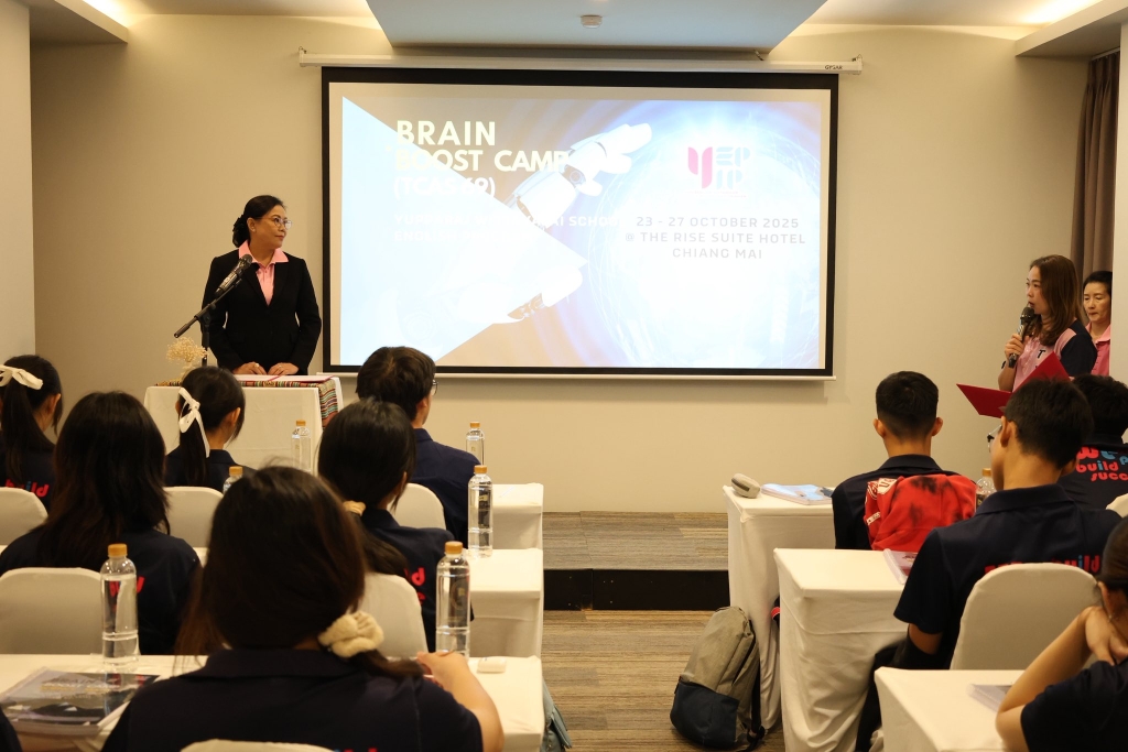 <p>On Thursday, October 23, 2025, Miss Supranee Panyana, Director of Yupparaj Wittayalai School, presided over the opening ceremony of the Brain Boost Camp for 49 English Program students in Matthayom 5 and 6 . This activity, held from October 23-27, 2025, at The Rice Suites Hotel, Chiang Mai, aims to thoroughly prepare upper-secondary students for the TCAS 2026 examinations, review key content, impart essential examination techniques and strategies, and ultimately stimulate motivation and build confidence for successful university admission.</p>